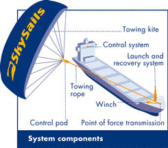 Of all known concepts for effective and sustainable alternative propulsion of merchant vessels, SkySails represents the only suitable model: no bothersome masts on deck, no restriction of stowage space, no hindrances to loading and discharging, no risk to the crew, cargo or ship as well as reliable overall performance. Utilisation of wind energy by means of the towing kite makes it possible to provide relief to the main engine – 10 to 15 percent less bunker consumption is expected in the initial phase of operation. The MV “Beluga SkySails” is equipped with a kite measuring 160 square metres. Later, when the sail is scaled up to 320 square metres in the course of the coming year in order to increase efficiency on the high seas, potential savings of 20 to 30 percent are definitely feasible and realistic. Beluga Shipping GmbH initially reckons with a reduction in the existing bunker costs for the vessels diesel fuel within a low four-digit US dollar range per day of operation of the towing kite system.