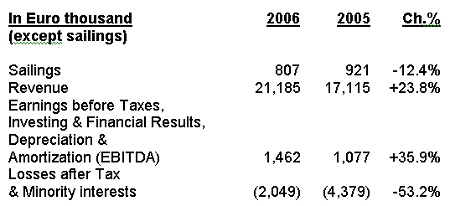 The significant decrease of Losses after taxes was due to the reduction in financial expenses following the successful refinancing of the Group’s debt obligations in June 2005 and the approximately Euro 1 mln profit booked from the sale of passenger catamaran Seajet 2 which was concluded in March 2006.