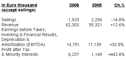 Further to the improvement of EBITDA, another reason for the significant increase in Profit after Tax was the reduction in financial expenses following the successful refinancing of the Group’s debt obligations in June 2005 and the approximately Euro 1 mln profit booked from the sale of passenger catamaran Seajet 2 which was concluded in March 2006.