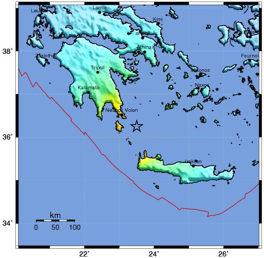Athens - A moderate earthquake measuring 5.8 on the Richter scale, shook parts of southern Greece on Saturday afternoon, the Athens Geodynamic Institute reported. Its epicenter was off the island of Kythira, 265 kilometres south west of Athens. No casualties or damage to buildings were recorded. The quake was felt in surrounding areas.