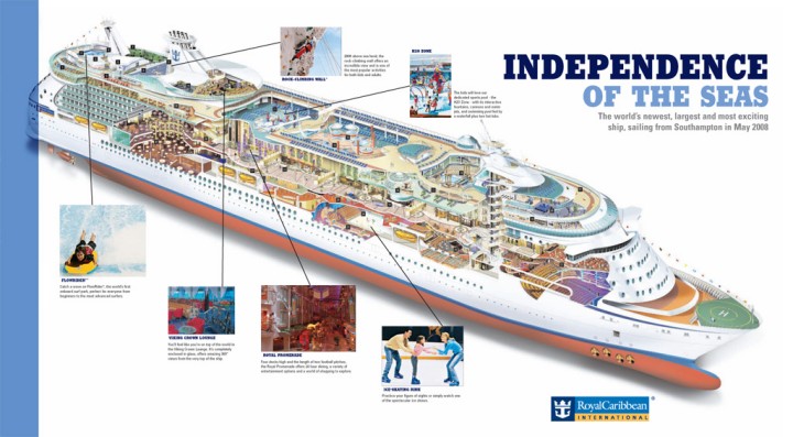The third in the series of the world's largest cruise vessels for Royal Caribbean was presented Thursday April 10. for the media in Aker Yards, Turku. The "Independence of the Seas" has all of the signature elements of her sister ships "Freedom of the Seas" and "Liberty of the Seas", making the Freedom-class ships the most innovative and forward-looking class of ships in the cruise industry for the time being.
