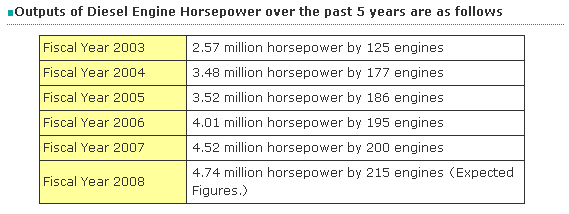 Mitsui Engineering & Shipbuilding Co., Ltd. (MES with president Mr. Yasuhiko Katoh) attained the output horsepower of the Mitsui-MAN B&W Low Speed Marine Diesel Engine manufactured at its Machinery Factory of Tamano Works amounting to record-high 4.52 million horse power (by 200 units) in the fiscal year of 2007, which exceeds the previous record of 4.01 million horse power (by 195 units)