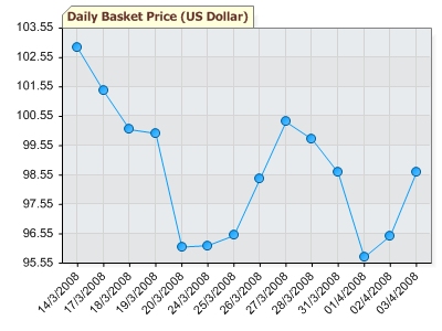 OPEC daily basket price stood at $98.63 a barrel Thursday, 3/4/08