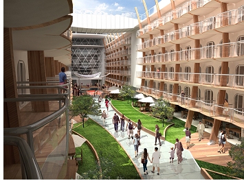 "Our brand identity is founded in innovation and on delivering the best cruise vacation through 'WOW' experiences," stated Adam Goldstein, President & CEO, Royal Caribbean International. "Central Park is a true evolution of cruise ship design and allows us to provide our guests with not only a more varied selection of balcony accommodations, but also a stunning public venue that will be a central element of the ship, both during the day and at night."