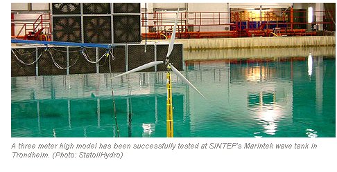 A three metre high model has already been tested successfully in SINTEF Marintek’s wave simulator in Trondheim. The goal of the pilot is to qualify the technology and reduce costs to a level that will mean that floating wind turbines can compete with other energy sources.