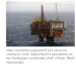 StatoilHydro has awarded completion equipment and services contracts on the Norwegian continental shelf for about NOK 1.2 billion a year over a three-year period.