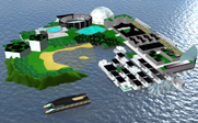 To make the concept as environmentally friendly as possible, a network of Floating Power Stations in the sea generates clean energy from the wave, wind, solar and bio-energy.