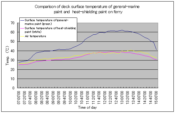 Comparison of deck surface temperature of general-marine paint and heat-shielding paint on ferry