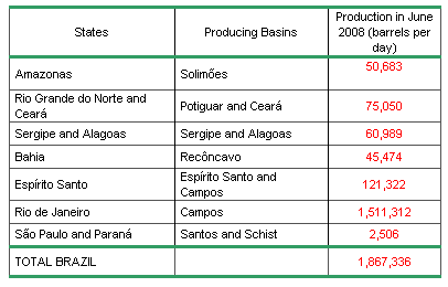The following schedule shows Petrobras’ 2008 oil production distribution in June 2008 per production area: