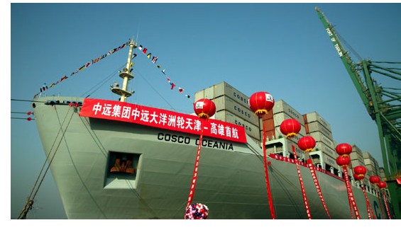 COSCO OCEANIA, with a TEU capacity of 10,000, departed Tianjin on 15th and will arrive at Kaohsiung on 17th, it would be the largest container ship the port ever receives, Yuan He left Shanghai on 15th and the voyage to Kaohsiung will only be one day.