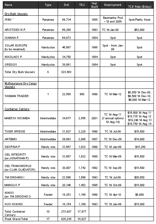 (*) "IRINI" is employed in the Baumarine spot pool that is managed by Klaveness, a major global charterer in the dry bulk area, and also participates in 'short' funds (contracts to carry cargo at agreed rates), reducing its exposure to the spot market.