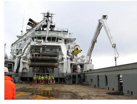 Image Caption: two CRV cranes from MacGREGOR Hydramarine on Island Offshore’s AHTS vessel, to which the new DHMS systems will be retrofitted in February 2009. (Download high res image here)