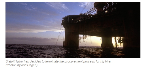 StatoilHydro is terminating its procurement process for rig hire for operations on the Norwegian continental shelf due to high rig rates.