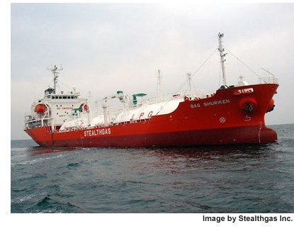 Headquartered in Athens, Greece, STEALTHGAS INC. is a ship-owning company serving primarily the liquefied petroleum gas (LPG) sector of the international shipping industry. STEALTHGAS INC. currently has a fleet of 39 LPG carriers with a total capacity of 173,499 cubic meters (cbm) and two M.R. product tankers. In addition, the company has entered into agreements to acquire two resale new building LPG carriers, the Gas Astrid and the Gas Exelero, with expected delivery in April and June 2009, respectively, plus five new building LPG carriers with expected delivery from September 2010 through December 2011 and two resale new building M.R. product carriers with expected delivery in April and November 2009. Once these acquisitions are completed, STEALTHGAS INC.’S fleet will be composed of 46 LPG carriers with a total capacity of 210,499 cubic meters (cbm) and four M.R. product tankers with a total capacity of 190,500 deadweight tons (dwt). STEALTHGAS INC’S shares are listed on the NASDAQ Global Select Market and trade under the symbol “GASS”.