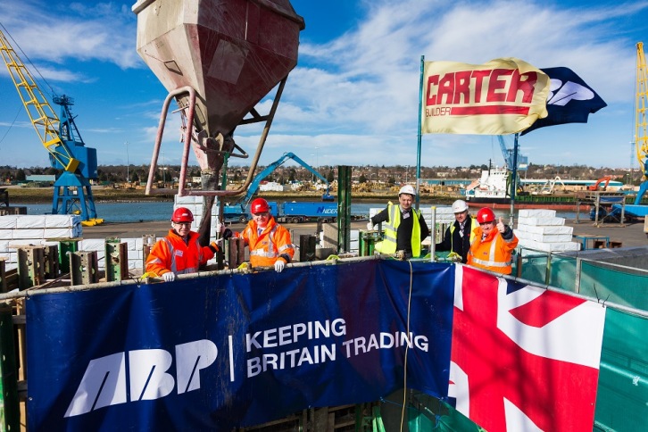 Image L to R: James Cooper, ABP CEO, Ben Gummer, MP for Ipswich, James Wilson, R G Carter, Andrew Harston ABP Director Short Sea Ports. Image by Associated British Ports (ABP) Associated British Ports (ABP) Press Release |