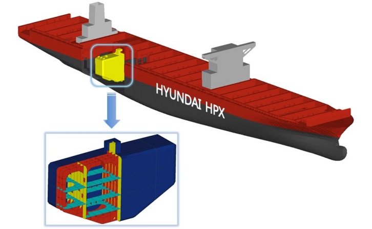 HHI’s fuel tank design was conceptualized and developed to minimize the loss of cargo space and effectively use available area on board the vessel. Image by ABS.