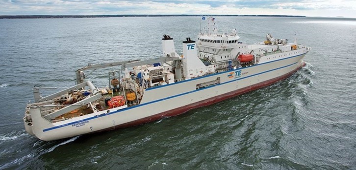 The assessment, which identifies operational risks and limitations, was performed with TE SubCom, a TE Connectivity Ltd. company and an industry pioneer in undersea communications technology, on its cable-laying vessel, Responder. (Image courtesy of TE SubCom.)