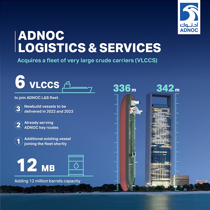 Two VLCCs added to fleet in 2020 with three newbuilds placed on order and one existing vessel recently purchased Project Management and Design work for newbuild vessels to be undertaken in the UAE, contributing to In-Country Value Expansion supports ADNOC’s growth in Trading and opens new revenue streams for ADNOC L&S article-img Abu Dhabi, UAE - February 25, 2021 ADNOC Logistics & Services (ADNOC L&S), the shipping and maritime logistics arm of Abu Dhabi National Oil Company (ADNOC), today announced the acquisition of six Very Large Crude Carriers (VLCCs). Two VLCCs have already been deployed into the company’s fleet. ADNOC L&S has placed an order for three newbuild vessels with options, which will be delivered in 2022 and 2023, and purchased one additional existing vessel that will be joining its fleet shortly. These vessels are the first crude carriers to join the ADNOC L&S fleet, adding a total cargo capacity of 12 million barrels. ADNOC L&S, which is currently the largest integrated maritime logistics and shipping company in the GCC, and owner and operator of the largest shipping fleet in the UAE, is pursuing a major fleet expansion program. This will enable the company to provide better service to its global customers, while also supporting ADNOC as it expands its production and refining capacity and grows its new trading operations. ADNOC has established two new trading companies: ADNOC Trading, which is focused on crude oil and started derivatives trading in September 2020; and ADNOC Global Trading (AGT), a joint venture with ENI and OMV that focus on trading of refined products and began operations in December 2020. Captain Abdulkareem Al Masabi, CEO, ADNOC Logistics and Services said, "The acquisition of these six VLCCs is one of our most significant growth steps to-date. This strategic move allows us to offer new services to our customers and supports ADNOC and its Trading entities to access new global energy markets, while also delivering incremental value and a new revenue stream to our business." "Given recent market conditions, we were able to purchase both existing and newbuild vessels at competitive prices. Owning these vessels will deliver cost efficiencies for our business, as opposed to chartering vessels, while also enabling us to provide a more reliable service to customers. These purchases also further reinforce our position as the largest, fully integrated logistics and shipping company in the region, paving the way for the transportation of greater crude volumes to customers across the world."