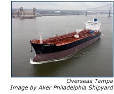 Aker Philadelphia Shipyard (Oslo: AKPS), a leading U.S. commercial shipyard, delivered to American Shipping Company (Oslo: AMSC) the shipyard’s twelfth Veteran Class MT-46 product tanker. The 46,000 dwt vessel, named the Overseas Tampa, will leave the shipyard in the coming days under the operation of Overseas Shipping Group (OSG) to transport petroleum products.