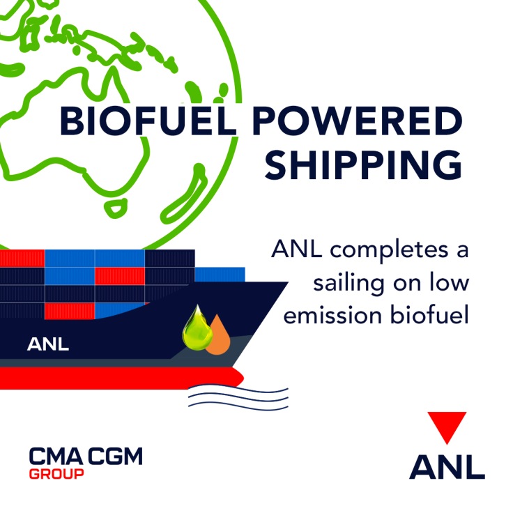 Image by ANL Bio-LNG, a new and immediately available solution on the path to Net Zero Carbon Setting the goal of achieving Net Zero carbon by 2050, ANL as a part of the CMA CGM Group is heavily investing in energy transition using the best technical solutions available today while proactively preparing for the future. The CMA CGM Group already operates today 27 vessels “e-methane ready” and will have a total of 44 vessels by the end of 2024. Today, the CMA CGM Group is also using biofuel onboard container ships that serve Intra-Europe. Biofuel, together with alternative fuels such as LNG and biomethane among others, will make up 10% of the CMA CGM Group’s energy mix by 2023. Managing Director of ANL Shane Walden says: “This voyage is a crucial step in not only our journey to Net Zero carbon but also the industry and region’s evolution to a cleaner and more sustainable way of working. We’re very grateful to our longstanding client Woolworths Group, as our key partner on the trial. Collaboration for the UN Sustainable Development Goals is certainly key!” Woolworths Group Director of Transport and Primary Connect, Chris Brooks says: “We’ve already reduced our own emissions by 27 per cent on the path to becoming net carbon positive by 2050, and we want to expand our efforts beyond our own business to make our supply chains greener too. Not only does ANL bring quality household products to Australia for our customers, it also helps us take great Australian Woolworths Group products to the world. This biofuel trial is a first of its kind for our business and we’re optimistic about how we can work with innovative partners like ANL to make each link in the supply chain more sustainable for a better tomorrow.” Deputy Premier and Minister for State Development Steven Miles welcomed the ship to the Port of Brisbane. “Queensland has the potential to become a leading biofuel refueling station in the western Pacific. The Queensland Government played a key role in partnering with ANL for the trial. Using locally produced biofuel, the project allows ships to make immediate and significant reductions to their emissions, helping to protect marine life, biodiversity and the planet.” “This is an exciting glimpse into a cleaner future for the shipping industry,” Port of Brisbane CEO Neil Stephens said. “We’re pleased to have worked closely with ANL, EcoTech, and BP Marine to make it happen. Only by working together can we make a genuine difference in reducing emissions and delivering a more sustainable port for the future.” ANL press release