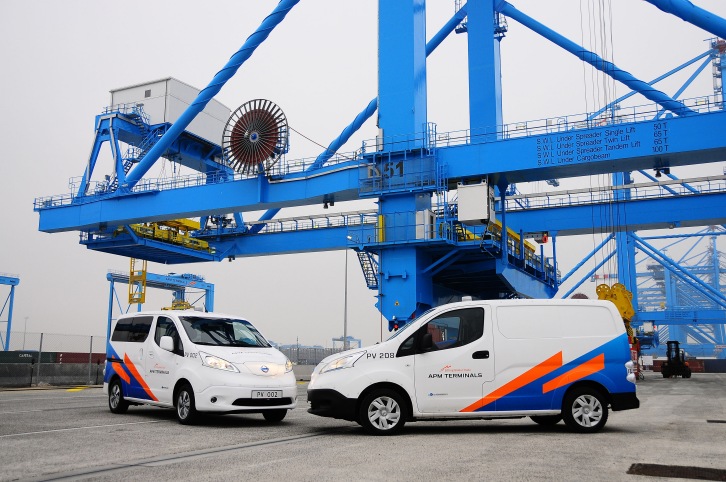 APM Terminals’ Maasvlakte II terminal was already positioned as the first terminal worldwide with zero emissions on site, through the electrification of all its quay and yard cranes and the innovation of a fleet of 37 electric battery-powered Lift-Automatic Guided Vehicles (Lift-AGVs) which will transport containers to the yard from the quay With the contract with Nuon, APM Terminals now pushes it ambition further in the power supply chain, by adopting 100% power supply by European windparks on- and offshore. NV Nuon Energy is one of the Netherlands’ three largest energy companies, and is part of Sweden’s Vattenfall A.B., an energy producer which is wholly-owned by the Swedish government. Vattenfall produces electricity from nuclear power, natural gas, biomass, coal power and hydro power as well as wind power, which accounted for 3.7 terawatt hours (TWh) of electricity for the company in 2013. “We are very proud of our technological advances in making this the world’s first zero-emission terminal operation to improve the port environment and set the industry pace in sustainability” said APM Terminals Maasvlakte II Managing Director, Frank Tazelaar. APM Terminals has also leased 35 e-NV200 electric vehicles from Nissan for the transportation of personnel and staff at the Maasvlakte II terminal. The order includes 16 of the Evalia model, with five seats and storage, which will be used primarily to ferry operators to and from job locations within the terminal, and 19 two-seater vans for Technical Asset Management, the Reefer department, IT, Security and other deployments. The battery charged range of these vehicles is more than sufficient for operational use at the terminal, at 140 km (90 miles) under normal road conditions. APM Terminals will be among the very first users of the e-NV200,which feature very low noise levels along with zero emissions, in the Netherlands.