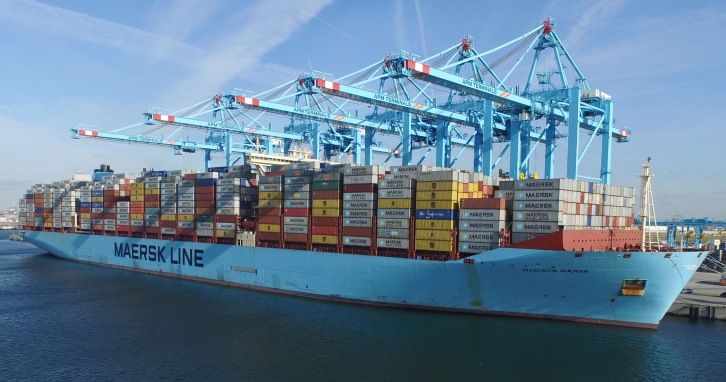 17,152 TEU loading with 10 Tiers above deck stowage. Rotterdam, The Netherlands – October 14, 2015 APM Terminals Maasvlakte II operations has set a record loading in Rotterdam on the MADISON MAERSK with 17,152 TEU loaded, including ten high above deck stowage. The vessel sails on Maersk Line’s AE-10 string in the Asia/Europe trade lane. Hans Van Kerkhof, Managing Director of APM Terminals Maasvlakte II said “This is an important milestone in our journey to help our clients achieve the vessel utilizations needed to optimize their networks and compete in the market. Our operations team worked hard to handle just under 1,000 containers during the 15 hour port call”. The vessel sailed with a high utilization to its next destination, Tangiers, Morocco on 30 September 2015. The APM Terminals Maasvlakte II Rotterdam facility ushers in a new era in port innovation. The facility launches the world’s first container terminal to utilize remotely-controlled STS gantry cranes. The cranes move containers between vessels and the landside fleet of 62 battery-powered Lift-Automated Guided Vehicles (Lift-AGVs) which transport containers between the quay and the container yard, including barge and on-dock rail facilities. The Lift-AGV’s also represent the world’s first series of AGV’s that can lift and stack a container. A fleet of 54 Automated Rail-Mounted Gantry Cranes (ARMGs) then positions containers in the yard in a high-density stacking system. The terminal’s power requirements are provided by wind-generated electricity, enabling terminal operations, which produce no CO2, emissions or pollutants, and which are also considerably quieter than conventional diesel-powered facilities. The facility, constructed on land entirely reclaimed from the North Sea, has been designed as a multi-modal hub to reduce truck traffic in favor of barge and rail connections to inland locations. Construction began in May 2012, with the first commercial vessel call in February 2015. 2015 and 2016 are the years of ramping up operations and refining the terminal operating system. The 86 hectare (212 acre) deep-water terminal features 1,000 meters of quay, on-dock rail, and eight fully-automated electric-powered Ship-to-Shore (STS) cranes, with an annual throughput capacity of 2.7 million TEUs, representing an APM Terminals investment of EUR 500 million. At planned full build-out, the terminal will cover 180 hectares (445 acres) and offer 2,800 meters of deep-sea quay (19.65 meters/64.5 feet depth), with an annual throughput capacity of 6 million TEUs. On October 2, 2015, APM Terminals Maasvlakte II delivered 1000 moves with a gross crane moves per hour of 20.8 on MAERSK LANCO – an 8,850 TEU vessel sailing on Maersk Line’s Samba string in the North-South trade.