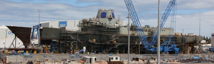 Minister for Defence, David Johnston announced the successful lift of Block 709 at the Pacific 2013 International Maritime Conference in Sydney in early October. The Aegis tower, constructed at ASC South will house the four octagonal-shaped phased array panels of the Aegis AN/SPY-1D (V) search radar. This brings the total number of blocks lifted onto the structure to date to 25 with only six remaining. In early October the first of the keel blocks for Ship 2 was successfully lifted into the ships cradles. Block 107, which weighs 250 tonnes, is the first of five major keel blocks to be lifted into position in preparation for Ship 2 keel laying in February 2014. The block was constructed in Spain, and was delivered to ASC in August. Block 107 is a major machinery block which will contain both a LM2500 Gas Turbine Engine and a Propulsion Diesel Engine. In the coming month, the following blocks are due to be erected: Block 601, the bow of the ship, Block 717 and Block 719. ASC Pty Ltd press release |