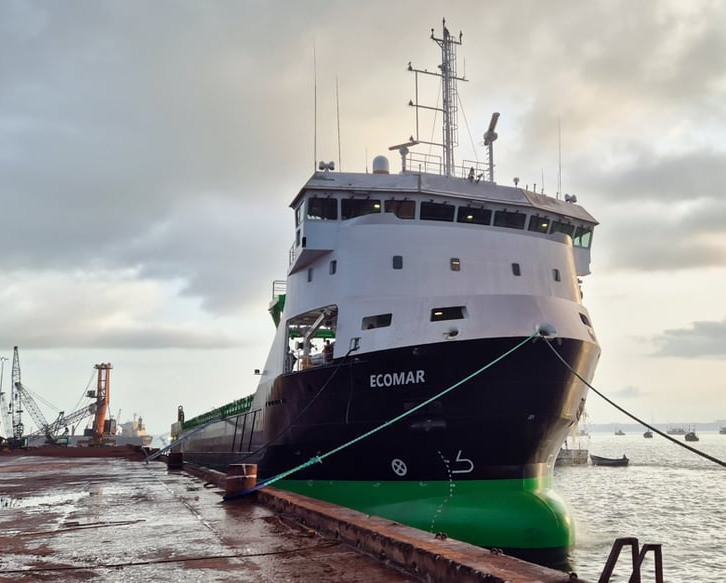 Ecomar joins the fleet 14.06.2024 AtoB@C Shipping has on 13th June taken delivery of Ecomar, which is the third vessel in the 12-strong series of 5,350 dwt plug-in hybrid vessels. Ecomar will shortly commence its maiden voyage from India to Europe. "The first vessel has now been in regular traffic for two months and both our team and clients have been delighted with its performance. We are happy to add Ecomar into our expanding fleet", says Commercial Director Frida Rowland. Ecomar is specifically designed to transport a variety of bulk and breakbulk products, including steel, forest products, fertilizers, and project cargoes. The ship features a spacious and unobstructed deck, enabling it to accommodate more deck cargo and longer project cargoes compared to the existing vessels in the fleet. To optimize cargo capacity and enhance navigation safety, the crew accommodation and the bridge are situated at the bow, thereby improving visibility during navigation.