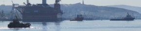 Gazprom - Towing of platform to the Prirazlomnoye field.