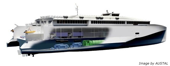 Austal Technical Manager, James Bennett, commented that Austal has been researching new ferry platforms that combine the advantages of light weight aluminium construction with LNG.