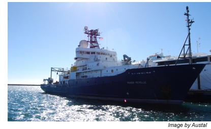 Austal is pleased to announce the mooring of the US Navy’s Research Vessel ROGER REVELLE (AGOR 24) at its Marine Support Base in Henderson, Western Australia. Owned by the US Office of Naval Research and operated by the Scripps Institute of Oceanography, the 274 foot (84 meter) ship is pierside for maintenance and crew change out.