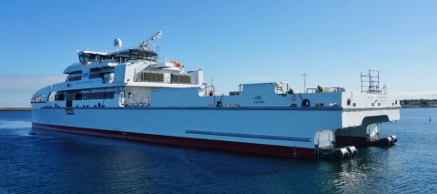 Austal Launches 70 metre Offshore Crew Transfer Vessel June 20, 2016 Austal Limited (ASX:ASB) is pleased to announce that Austal Australia has successfully launched Hull 392, a 70 metre offshore crew transfer vessel for Caspian Marine Services Limited (CMS) of Azerbaijan, at the company’s Henderson shipyard in Western Australia. Following the contract award in June 2015, construction commenced in October 2015. In parallel with the forward hull module fabricated at Austal Philippines in Balamban, Cebu, the stern hull module and superstructure were constructed at Austal Australia. In March 2016 the forward hull was transported to Henderson where the superstructure and stern were connected. Footage of the assembly may be viewed on Austal’s Youtube Channel here. Austal Large Crew Transfer 70 (Hull 392) launching at Austal’s Henderson Western Australia shipyard. The 30 knot, 150 passenger catamaran features a 400sqm cargo deck and is configured to allow ‘walk to work’ crew transfers between vessel and offshore installations, via an Ampelmann platform. At the vessel launch, Austal Chief Executive Officer David Singleton remarked “The on-time launch of this impressive ship further demonstrates Austal’s proven, export - competitive shipbuilding capabilities in to international markets and the successful integration of a global supply chain across our Philippines and Australian operations”. Based on a design by Incat Crowther, the Austal Large Crew Transfer 70 - named Rashid Behbudov - is on schedule for delivery to CMS in the third quarter of 2016, following final fit-out and completion of sea trials. Austal Large Crew Transfer 70 (Hull 392) maneuvering alongside at Austal Australia (with Royal Navy of Oman’s High Speed Support Vessel AL NAASIR (S12) and the Australian Border Force’s Cape Wessell patrol boat in the background). About Austal Austal is a global defence prime contractor and a designer and manufacturer of defence and commercial ships. For more than 27 years Austal has been a leader in the design, construction and maintenance of revolutionary ships for governments, navies and ferry operators around the world. More than 255 vessels have been delivered in that time. Ships Defence vessels designed and built by Austal include multi-mission combatants, such as the Littoral Combat Ship (LCS) for the United States Navy and military high speed vessels for transport and humanitarian relief, such as the Expeditionary Fast Transport (EPF) ships for the U.S. Navy and High Speed Support Vessel (HSSV) for the Royal Navy of Oman. Austal also designs, constructs, integrates and maintains an extensive range of patrol and auxiliary vessels for government agencies globally, including the Cape Class Patrol Boat Program for Australian Border Force. Defence vessels are designed and constructed in Mobile, Alabama and in Henderson, Western Australia. Austal has been at the forefront of the high speed ferry market since the early days of the industry. Our market leading designs of high performance aluminium vessels have long been at the heart of Austal’s research and development. Today, commercial ship construction is centred on our shipyard in Balamban, Philippines. Systems Austal has expertise in integrating complex systems into its ships, including ride control, ship management, and communication, sensors and weapon systems. Support Austal provides a wide range of support services, including through life support, integrated logistics support, vessel sustainment and systems support. These services are delivered through our global support network in the USA, Australia, Asia, and the Middle East together with partner shipyards worldwide. Austal press release |