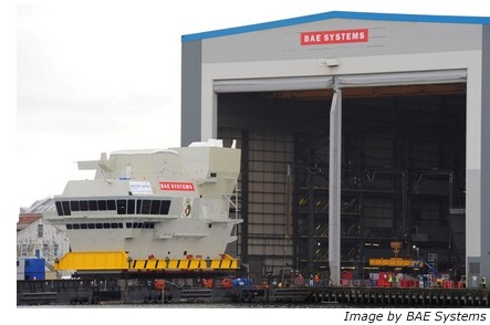 Portsmouth, United Kingdom: The most iconic section of HMS Queen Elizabeth, the Forward Island containing the bridge, has begun her delivery journey from the dock hall on HM Naval Base Portsmouth where the first steel was cut just 70 weeks ago.