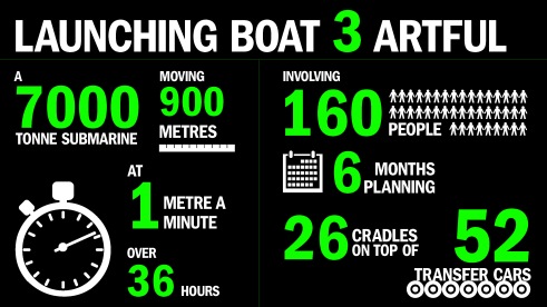The 97m long, 7,400 tonne nuclear-powered attack submarine - officially named at a ceremony in September last year - began edging out of BAE Systems’ giant construction hall on Friday 16 May and was carefully lowered into the water on Saturday 17 May. Artful, the third of seven highly complex Astute class submarines being designed and built for the UK Royal Navy, will now begin the next phase of its test and commissioning process ahead of sea trials next year. Stuart Godden, Astute Programme Director for BAE Systems, said: “The launch of Artful is another significant step forward in the Astute programme. “Building on past experiences we’ve been able to launch her in the most advanced state of construction of any submarine to be built in Barrow. This allows us to now fully concentrate on the test and commissioning activities required to get her to sea. “Moving a submarine of this size from its build hall to the water is very challenging. It’s testament to the experience and careful planning of the team involved that Artful is now ready for the next phase in her programme. “Witnessing a submarine move out of the hall and be readied for launch is truly inspiring and a source of great pride to the thousands who have played a part in getting Artful to this stage.” Artful will now undergo a series of complex tests to prove the safety and operability of its systems before it departs BAE Systems’ site for sea trials. The Ministry of Defence’s Director Submarines, Rear Admiral Mike Wareham, said: “The Astute programme is making real progress and the sight of the third submarine afloat in the water is a reflection of the hard work of both the MOD and industry. “The launch of this submarine brings it a step closer to entering into service where it will provide a key capability for the Royal Navy and an essential component of the Submarine Service into the future.” BAE Systems, the prime contractor in the Astute programme, is the UK's only designer and builder of nuclear powered submarines - one of the most complex engineering programmes in the world today. The first two submarines in the Astute class – HMS Astute and HMS Ambush – have now been handed over to the UK Royal Navy, while the remaining five are in various stages of construction. BAE Systems is also leading on the design of a replacement to the Vanguard class of submarine, working alongside the UK's Ministry of Defence, Rolls Royce and Babcock on a programme that now employs more than 2,000 people – of which approximately 1,400 are from BAE Systems. This number is expected to grow significantly throughout 2014 as the programme continues to gather momentum. BAE Systems plc, press release |