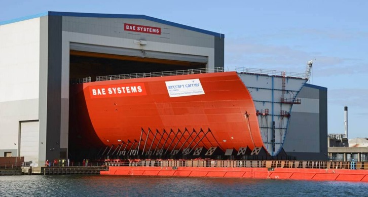 Lower Block 02 forms the distinctive forward hull section of the ship and houses cabins, machinery spaces, stores and switchboards. Standing over 20 metres high, 70 metres long and 40 metres wide, more than 8,000 pipes and 260,000 metres of cable have been installed on the block since construction started in February 2012. In an operation lasting more than 10 hours, the aircraft carrier section was carefully loaded out of the hall in which it was constructed last week. Eight trains of transporters, which together had more than 2,000 wheels, moved the section onto a barge ahead of its five day journey around the east coast of the UK to Rosyth. On arrival, the barge will submerge to allow Lower Block 02 to be floated off and maneovred into dry dock. The departure of Lower Block 02 marks the completion of shipbuilding in Portsmouth, although BAE Systems remains a significant employer in the region, with around 3,800 people in the Solnt area working in its Maritime Services business, as well as in the design, development and integration of combat systems and the Type 26 engineering design team. A significant plan of investment is also underway to prepare HM Naval Base Portsmouth as the home port of the Queen Elizabeth Class aircraft carriers with HMS QUEEN ELIZABETH due to make her first arrival into the city in 2017. This includes dredging the approach and main channels inside the harbour, upgrades to navigational aids and the refurbishment of several jetties, along with wider infrastructure improvements. The aircraft carriers HMS QUEEN ELIZABETH and HMS PRINCE OF WALES are being delivered by the Aircraft Carrier Alliance, a unique partnering relationship between BAE Systems, Thales UK, Babcock and the Ministry of Defence. BAE Systems has an overarching role in managing the Queen Elizabeth Class programme, as well as playing a central role in the design and build of the ships. The Queen Elizabeth Class will be the centre piece of Britain’s military capability. Each 65,000 tonne aircraft carrier will provide the armed forces with a four acre military operating base which can be deployed worldwide. The vessels will be versatile enough to be used for operations ranging from supporting war efforts to providing humanitarian aid and disaster relief. Members of the public can follow the delivery journey of Lower Block 02 on www.shipais.co.uk by tracking the tug Eraclea. BAE Systems plc, press release |