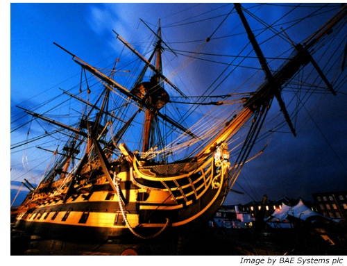 “During the recent removal of the top sections of the masts we have kept HMS Victory open to the public and it’s our intention to keep the ship open as we carry out the rest of the work. The restoration will give the visiting public the opportunity to gain an even greater insight into the build of this iconic vessel.” The five year contract, with an additional five year option, will allow a detailed schedule of work to begin, including the installation of a new fire suppression system to help protect HMS Victory for years to come. A project team will now undertake a full survey of the vessel to identify priority areas, which is expected to include the replacement of shipside planking and repairs to the middle-gun deck, as well as planned maintenance. The National Museum of the Royal Navy’s Director General, Professor Dominic Tweddle, added: “We are intensely heartened that a new contract is in place for the restoration of HMS Victory. We are looking forward to working with BAE Systems to ensure that this iconic ship is open to visitors throughout. Our new exhibition, ‘Bones of Oak and Iron’ which explains what is happening to Victory and why, is already drawing crowds and as work proceeds it will be constantly updated.” The project is one of the most extensive restorations of the 246 year old warship since she was repaired after the damage sustained at the Battle of Trafalgar in 1805. BAE Systems has supported HMS Victory for more than 13 years at Portsmouth Historic Dockyard, as part of its military and technical services offering. As well as supporting the oldest warship in the Royal Navy’s fleet, BAE Systems also provides in-service support to the newest additions, the Type 45 destroyers. BAE Systems plc, press release |
