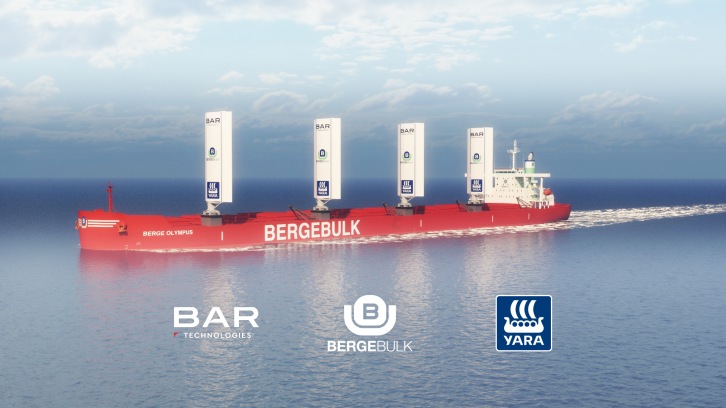 Berge Bulk, leading the dry bulk market in decarbonisation, will equip its Newcastlemax bulker Berge Olympus with BARTech WindWings by Yara Marine Technologies. Singapore, 29 June 2022 Berge Bulk, BAR Technologies, and Yara Marine Technologies have reached an agreement to install four BARTech WindWings by Yara Marine Technologies (WindWings) onboard the 210,000 DWT bulk carrier Berge Olympus. "This partnership with BAR Tech and Yara Marine is a great step towards our transition to zero-emission operations. Preserving our planet's resources is fundamental to Berge Bulk's sustainability vision and goals," says James Marshall, CEO of Berge Bulk. "At Berge Bulk, we believe in the results that can be achieved by harnessing wind power. Evaluating this groundbreaking technology, the estimated impact on reducing emissions can be at least as significant as transitional fuels. We look forward to continuing our collaboration with BAR Tech and Yara Marine to install the first WindWings onboard Berge Olympus and for the optimisation needed when deploying such innovative technologies." This contract strengthens Berge Bulk's commitment to pioneer the shipping industry's decarbonisation journey. They will be an early adopter of wind-assisted propulsion technology, evaluating a pivotal technology to reduce the emissions of its bulker fleet. "A successful transition to a lower-carbon future can only be achieved through an inclusive approach. I strongly believe that many valuable solutions deserve greater attention, and wind-assisted propulsion is one of them. This collaboration between Berge Bulk, BAR Technologies and Yara Marine skyrockets the momentum for wind propulsion," adds Thomas Koniordos, CEO of Yara Marine Technologies. "Wind has been the most evident ship propulsion for centuries. We are excited that industry-leading companies like Berge Bulk have the vision and commitment to equip their vessels with wind-assisted propulsion technologies. At Yara Marine, we are delighted to strengthen our partnership with Berge Bulk and proud to enable the large-scale installations for WindWings, bringing back emission-free wind power to shipping." The large, solid wing sails on board these bulkers will measure up to 50 metres in height and will be capable of reducing CO2 emissions by as much as 30% through a combination of wind propulsion and route optimisation. By doing so, Berge Bulk aims to take a major step in assisting the broader industry in achieving its emission targets for 2050. "Berge Bulk's decision to invest in our WindWings technology is a clear endorsement of its commitment to moving to decarbonise its vessel fleet and be one of the leaders of sustainable change in shipping," said John Cooper, Chief Executive Officer, BAR Technologies.
