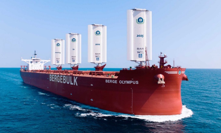 17 October, 2023 • Berge Olympus, a Newcastlemax bulker, is equipped with four BARTech WindWings by Yara Marine Technologies that use wind power to reduce fuel consumption and CO2 emissions. • The WindWings installation is part of Berge Bulk's ambition to become carbon neutral by 2025 and lead the world to a zero-carbon future through safe, efficient, and sustainable shipping. Moving to Zero by 2025 Berge Bulk, one the world's leading dry bulk ship owners, launches its Newcastlemax bulker, Berge Olympus, with four retrofitted BARTech WindWings by Yara Marine Technologies. The WindWings installation is part of Berge Bulk's ambition to become carbon neutral by 2025 and marks the Berge Olympus as the world's most powerful sailing cargo ship. Emission-free wind power With four WindWings installed, each possessing an aerodynamic span of 37.5 metres height and 20 metres width, the Berge Olympus will save 6 tonnes of fuel per day on an average worldwide route and, in the process, reduce CO2 emissions by approximately 19.5 tonnes per day. With these fuel savings and CO2 reductions, Berge Bulk is evaluating the potential of installing WindWings on more of its vessels that trade on routes with favourable wind conditions. High-Tech Retrofits Berge Bulk's WindWings project is a testament to its commitment to lead the way towards a zero-carbon future while enhancing vessel efficiency. This initiative aligns with the new IMO goals, to reach net-zero GHG emissions from international shipping by or around, i.e. close to 2050, as well as indicative check-points for international shipping to reach net-zero GHG emissions for 2030 (by at least 20%, striving for 30%) and 2040 (by at least 70%, striving for 80%). Contributing to this mission, Berge Bulk's WindWings project reflects its dedication to environmental sustainability and technological advancement. In addition to the installation of the WindWings, Berge Olympus has been retrofitted with a shaft generator system. The shaft generator is driven by the main engine to supply electric power to the vessel, thus saving fuel and reducing emissions. With a 1MW capacity, it is sized to eliminate the need to operate auxiliary engines while at sea. This installation is in itself ground-breaking and concludes a program that saw multiple vessels retrofitted with the technology. The Marshall Plan As part of the global effort to reach future decarbonisation goals, Berge Bulk is forging a trail to carbon neutrality by 2025 through safe, efficient and sustainable shipping. To achieve this milestone, Berge Bulk has deployed a four-pillar decarbonisation plan that focuses on improving fleet efficiency, leveraging the latest maritime technology, piloting new fuels and investing in carbon capture, Berge Bulk calls it the Marshall Plan. Berge Bulk's adoption of WindWings - the culmination of years of research by naval architect BAR Technologies - highlights the clear opportunity for vessel owners to swiftly retrofit new technologies to make a rapid and profound difference to the climate impact of their fleet.