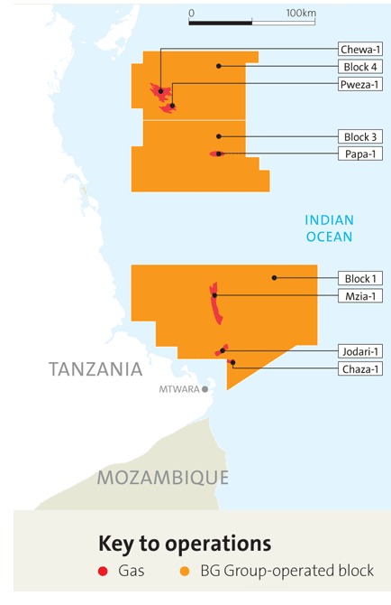 BG Group as operator has a 60% interest in Blocks 1, 3 and 4 offshore Tanzania, with Ophir Energy holding 40%. The partners are now evaluating 3-D seismic survey data to help identify offshore targets for a new exploration programme in 2014.