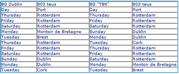 The new service will not only be calling at Rotterdam, Dublin and Cork directly to / from Montoir de Bretagne and Brest but will also be connecting both French ports with other ports in the BG Freight Line schedules such as Belfast, Grangemouth and Teesport through transshipment in Rotterdam.