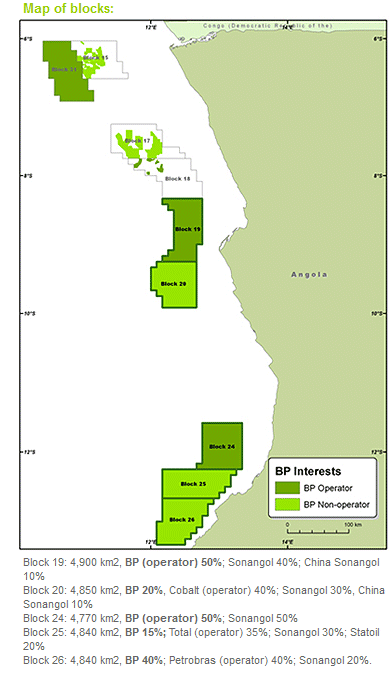 • BP already has stakes in four blocks in Angola – Blocks 15 & 17 non-operated; 18 & 31 BP-operated. BP has production from Blocks 15, 17 and 18. Reported production in 2010 was 170,000 net barrels per day (bpd).