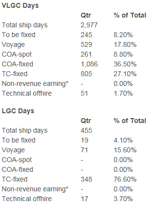 * Non-revenue earning days are those days where a vessel is technically available for hire but not earning revenue, e.g. no available fixtures; delivery from yard to first charter; redelivery of vessel on completion of charter-in. About BW LPG BW LPG is the world's largest very large gas carrier (VLGC) owner and operator based on number of VLGCs and by LPG carrying capacity. BW LPG owns and operates 38 gas carriers with a total carrying capacity of close to 3 million cbm and a further 672,000 cbm of capacity on order in Korea. With more than 35 years of operating experience in LPG shipping and experienced seafarers and staff, BW LPG offers a flexible and reliable service to customers. BW LPG is associated with BW Group, one of the world's leading shipping groups. BW Group is involved in oil and gas transportation, floating gas infrastructure, environmental technologies and deep-water production. BW LPG press release |