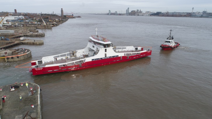 February 19, 2019 Cammell Laird has today staged the ‘float-off’ for a new £10million ferry it has built for Isle of Wight ferry operator Red Funnel. The Red Kestrel, a new freight-only RoRo vessel, will operate between Southampton and Isle of Wight. The vessel will officially join the fleet on arrival in Southampton, and enter service in May, following a trials and training period. The launch event, marks the debut of Red Funnel’s first dedicated RoRo freight ship since the company’s inception almost 200 years ago. Red Kestrel highlights Red Funnel’s commitment to British shipbuilding and engineering. Red Funnel has a history of investing in UK shipyards, having taken delivery of its high-speed ferries Red Jet 6 and Red Jet 7 from an Isle of Wight based shipyard. Fran Collins, CEO of Red Funnel, said, “We are delighted by today’s launch of Red Kestrel. The addition of a new ship is always an exciting time for everyone in the company and we look forward to taking delivery in April. We’re thrilled that not only will Red Kestrel increase our total capacity and enhance convenience for our cross-Solent customers but we also take tremendous pride in supporting the revival of world-class shipbuilding in this country. It’s a very special feeling for all of us and we’re in good hands with Cammell Laird. They have been a brilliant partner and we’re very grateful for all their tremendous work.” Tony Graham Cammell Laird Chief Operating Officer, said: “Cammell Laird would like to thank Red Funnel for placing its trust in us to build this wonderful state-of-the-art ferry, drawing on all our marine engineering expertise. “We are especially proud to be working for a British ferry company, winning the contract against international competition. Today marks an important milestone in the project and we are proud to see the Red Kestrel join a collection of ferries that Cammell Laird has built in recent years. Shipbuilding is back in a serious way on the Mersey and it has been brilliant to see the Red Kestrel being built alongside the iconic RRS Sir David Attenborough, which is the largest commercial vessel built in Britain for a generation. Cammell Laird sees a big market in ferry repair, conversion and new build and we will be showcasing our work on the Red Kestrel at the Nor Shipping trade fair in Oslo later this year. It is tremendous to see more ship owners and ferry operators choosing to build in the UK, this is very much in line with the Government’s National Shipbuilding Strategy which aims to recalibrate British shipbuilding as a major job and wealth creator now and into the future.”