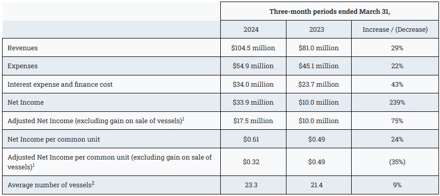 Athens, Greece - April 30, 2024 Capital Product Partners L.P. (the "Partnership", "CPLP" or "we" / "us") (NASDAQ: CPLP), an international owner of ocean-going vessels, today released its financial results for the first quarter ended March 31, 2024. Highlights