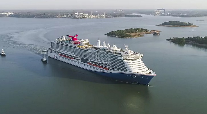 September 28, 2020 Carnival Cruise Line’s new Mardi Gras is shown here departing on its sea trials this morning from the Meyer Turku shipyard in Turku, Finland. The vessel will spend 10 days at sea before returning to the dock for final preparations for its departure for the U.S. The first ship in North America to be powered by Liquefied Natural Gas (LNG), Mardi Gras is scheduled to enter service from Port Canaveral, Fla., Feb. 6, 2021, operating week-long itineraries.