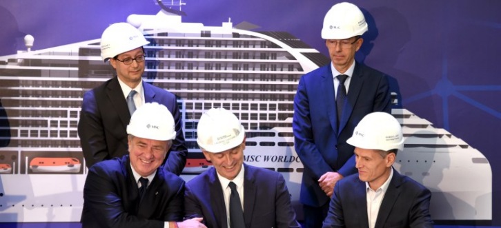 On the picture from left to right : - Patrice Tochon, Chef du département thermique biomasse et hydrogène CEA Tech - Jean-Philippe Bourgoin, Directeur Adjoint CEA Tech - Pierfrancesco Vago, Président exécutif MSC Croisières - Laurent Castaing, Directeur Général Chantiers de l’Atlantique - Benoît Lecinq, Président de Entrepose groupe Image by Chantiers de l'Atlantique. Chantiers de l'Atlantique press release
