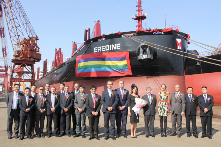 Outfitting Quay of Chengxi Shipyard, 3:00 pm, 29 April 2014 The naming ceremony of No.5 39,100 DWT bulk carrier built by Chengxi Shipyard for CNCO was held. Attending at the ceremony were Mrs. Suisie Blackburn and Mr. Tim Blackburn, Managing Director of CNCO, Mrs. Kate Wemyss and Mr. William Wemyss of Wemyss Development Company Ltd, Mr. Yangyu, Deputy Director of Asia and Pacific Depart., CSTC, Mr. Wang Yongliang, President of Chengxi Shipyard, Mr. Ji Jun, Vice-President of Chengxi Shipyard and other heads and guests concerned.
