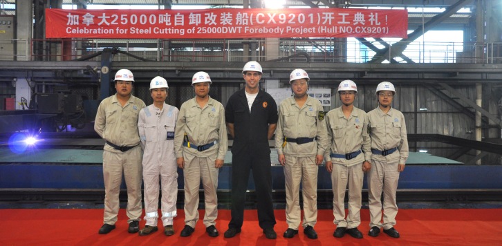 At 11: 28 a.m., September 12, the steel cutting ceremony of the conversion project for M/V Lalandia Swan (25,000 DWT) was held in the Steel Fabrication Workshop of Chengxi Shipyard. The owners, classifications and Mr. Xu Shenquan, Assistant President of Chengxi Shipyard and other heads concerned attended this ceremony.