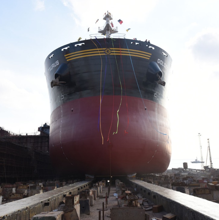 January 2015 At 3:58 pm, on Dec. 28, Chengxi Shipyard had the No.26 64k bulk carrier launched in Shipbuilding Line No.3 at Qidong, indicating its fulfillment of annual production task to launch 11 vessels in this production line. The new vessel, as the 52th vessel launched in the Production Line No.3 for the past six years since it was started, is built for Golden Ocean Group Limited. Following that, the No.9 49K bulk carrier had the keel laying completed on this slipway.