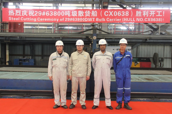 17 April 2015 The steel cutting ceremony of No.29 63,800 bulk carrier built for Golden Ocean was held in Steel Fabrication Workshop at 14:00 p.m. on April 15. This is the sixth vessel in Dolphin 64 new building programme and is scheduled for keel laying on this August 22. Chengxi Shipyard Co., Ltd. press release